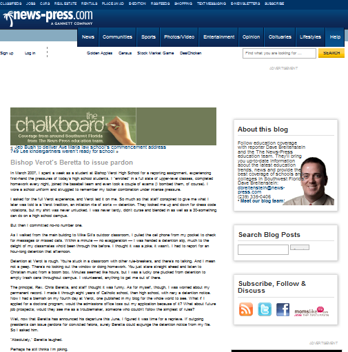 To get a better understanding of what today’s teens are facing, I spent an entire week as a student at Bishop Verot High School. I asked for no special treatment, and that meant hours of homework every night, exams, cafeteria food and a spot on the baseball team. And unfortunately, the “Verot experience” also meant detention.